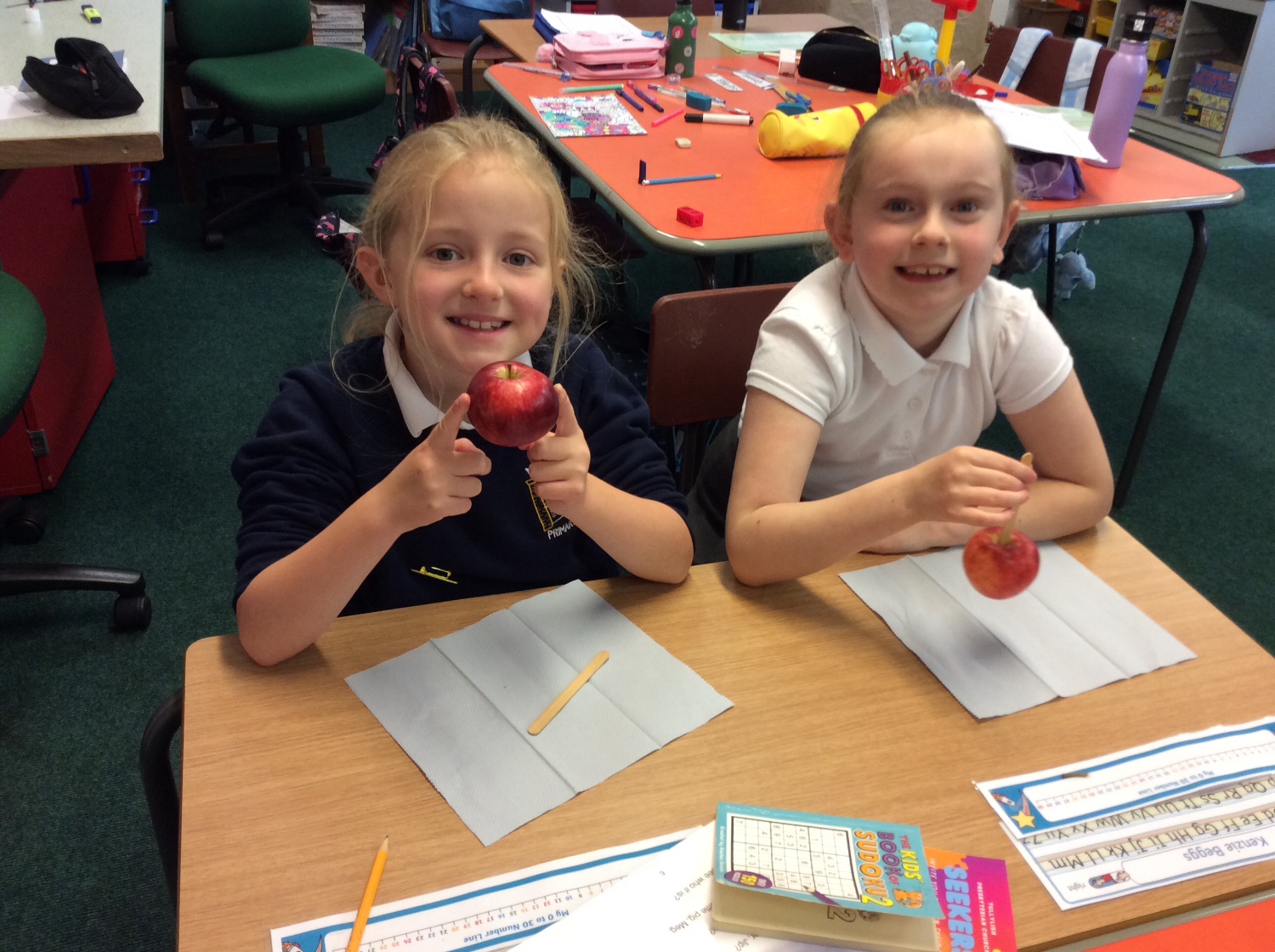 Mathilda and her family have apple trees in their garden. Thank you for bringing in delicious apples for us to eat. We made chocolate apples and decorated them with sprinkles and marshmallows. First we melted the chocolate over a pan of hot water and then we pushed our lollipop sticks through the apple. We rolled our apples in the melted chocolate, waited for the chocolate to harden slightly and covered them in sprinkles and marshmallows. We loved this activity and enjoyed eating the delicious apples.