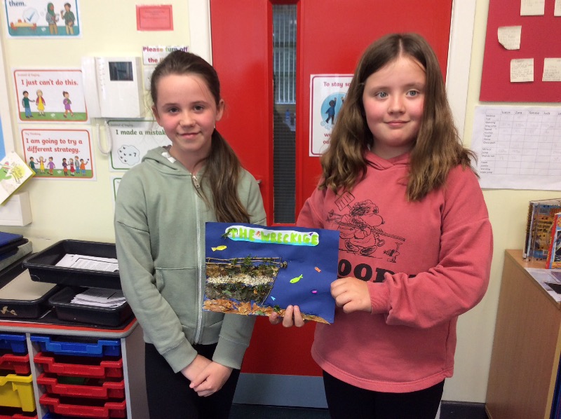 P6 and 7 created collages of scenes from the Titanic. We have such beautiful grounds at school that we had a wealth of natural resources at our fingertips. When we finished our collages we shared our experiences with our Shared Education partner schools via video conferencing.