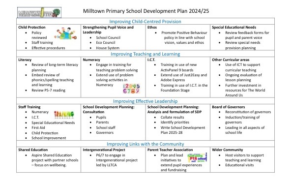 Each year we seek to make improvements to enhance the learning and wellbeing of our pupils. See an overview of our areas for development in 2024/25.